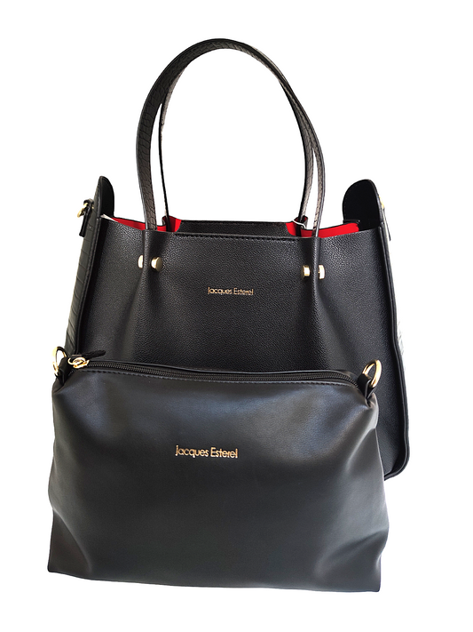 Sac à main Jacques Esterel (deux en un) cuir noir